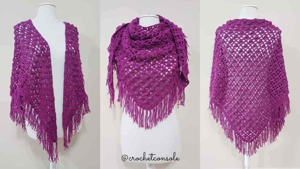 No se olviden de compartir sus trabajos tejidos con los patrones del blog en la redes sociales etiquetándome como @crochetconsole. Lo pueden compartir como: Chal a crochet con relieve.