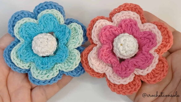 No se olviden de compartir sus trabajos tejidos con los patrones del blog en la redes sociales etiquetándome como @crochetconsole. Lo pueden compartir como: Flor en capas a crochet paso a paso